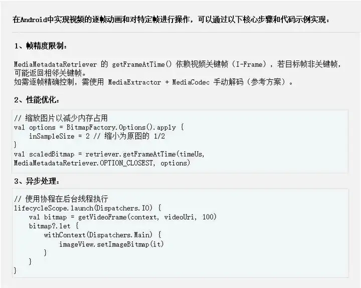 我们可以直接使用Mediaplayer、VideoView等开源播放器把UI设计师给我们的视频文件播放出来,一般情况下这样就够了。但是有一天UI设计师让你在视频的第50-100帧做些处理,视频画面做下抖动、放大等的处理,你可能会有些不知所措,这时候你的脑子里面可能有这些概念: